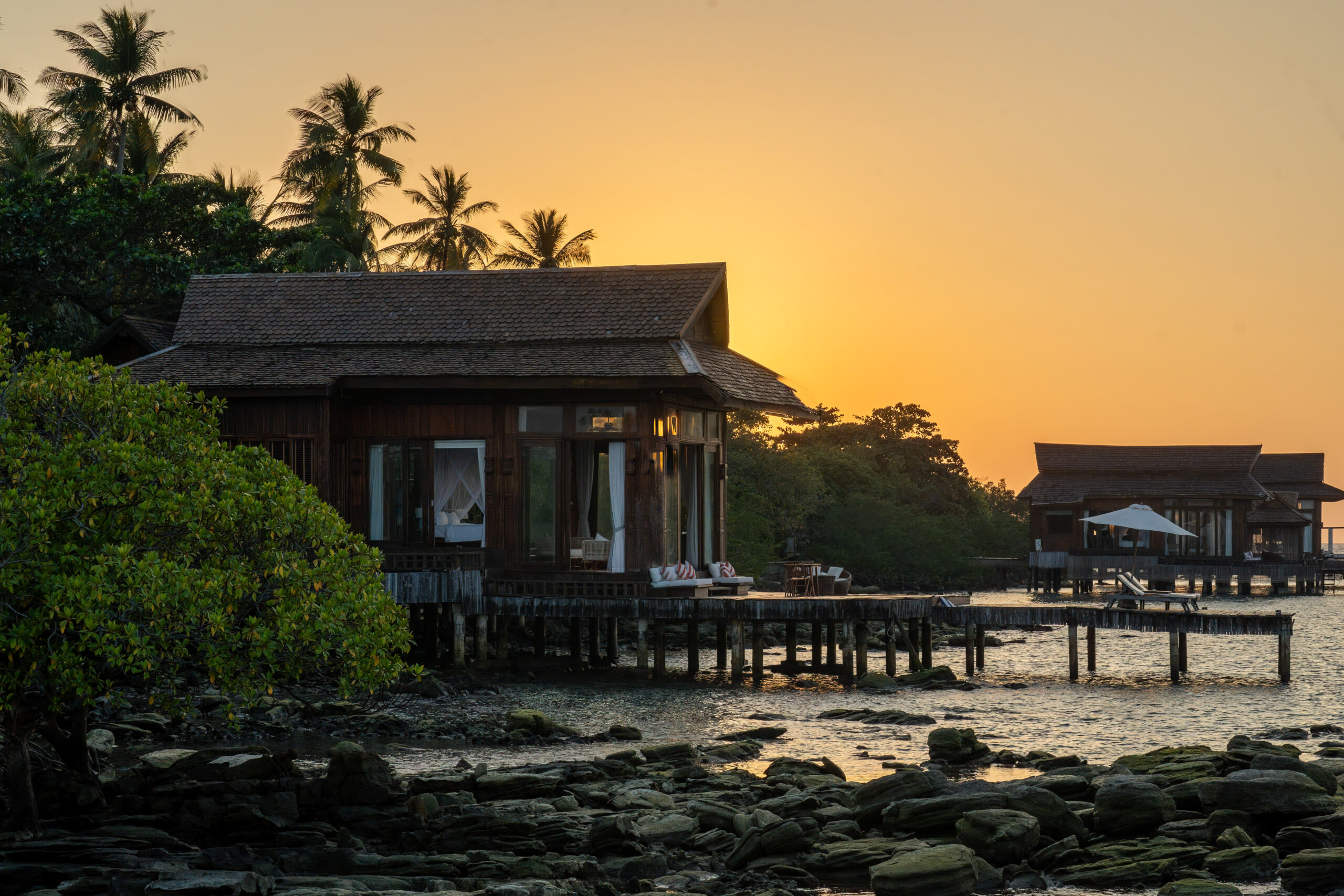 A spacious overwater villa cluster designed for families and groups. Three interconnected overwater villas crafted in traditional Cambodian wooden architecture, offering shared moments, individual privacy, and direct access to the sea.